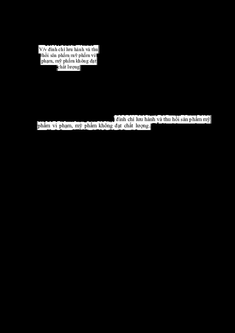 | Tiêu đề văn bản | Đình chỉ lưu hành và thu hồi sản phẩm mỹ phẩm vi phạm, mỹ phẩm không đạt chất lượng | ||