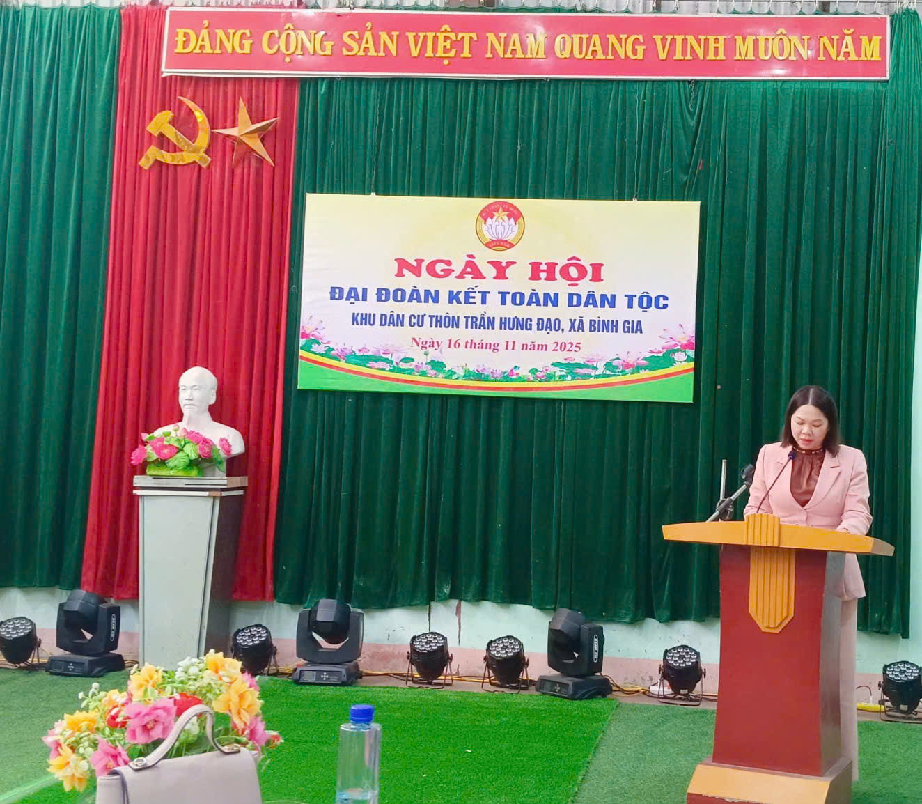 Tại ngày hội, các đại biểu và Nhân dân trong thôn đã cùng nhau ôn lại truyền thống vẻ vang 95 năm Ngày thành lập Mặt trận Dân tộc thống nhất Việt Nam - Ngày truyền thống MTTQ Việt Nam (18-11-1930 - 18-11-2025) của Mặt trận Tổ quốc Việt Nam, khẳng định tinh thần đoàn kết, gắn bó, tương thân tương ái của cộng đồng dân cư; Nghe báo cáo khái quát kết quả thực hiện nhiệm vụ xây dựng khối đại đoàn kết toàn dân tộc; Kết quả thực hiện các cuộc vận động, các phong trào thi đua yêu nước tại thôn và phương hướng, nhiệm vụ trọng tâm năm 2026.