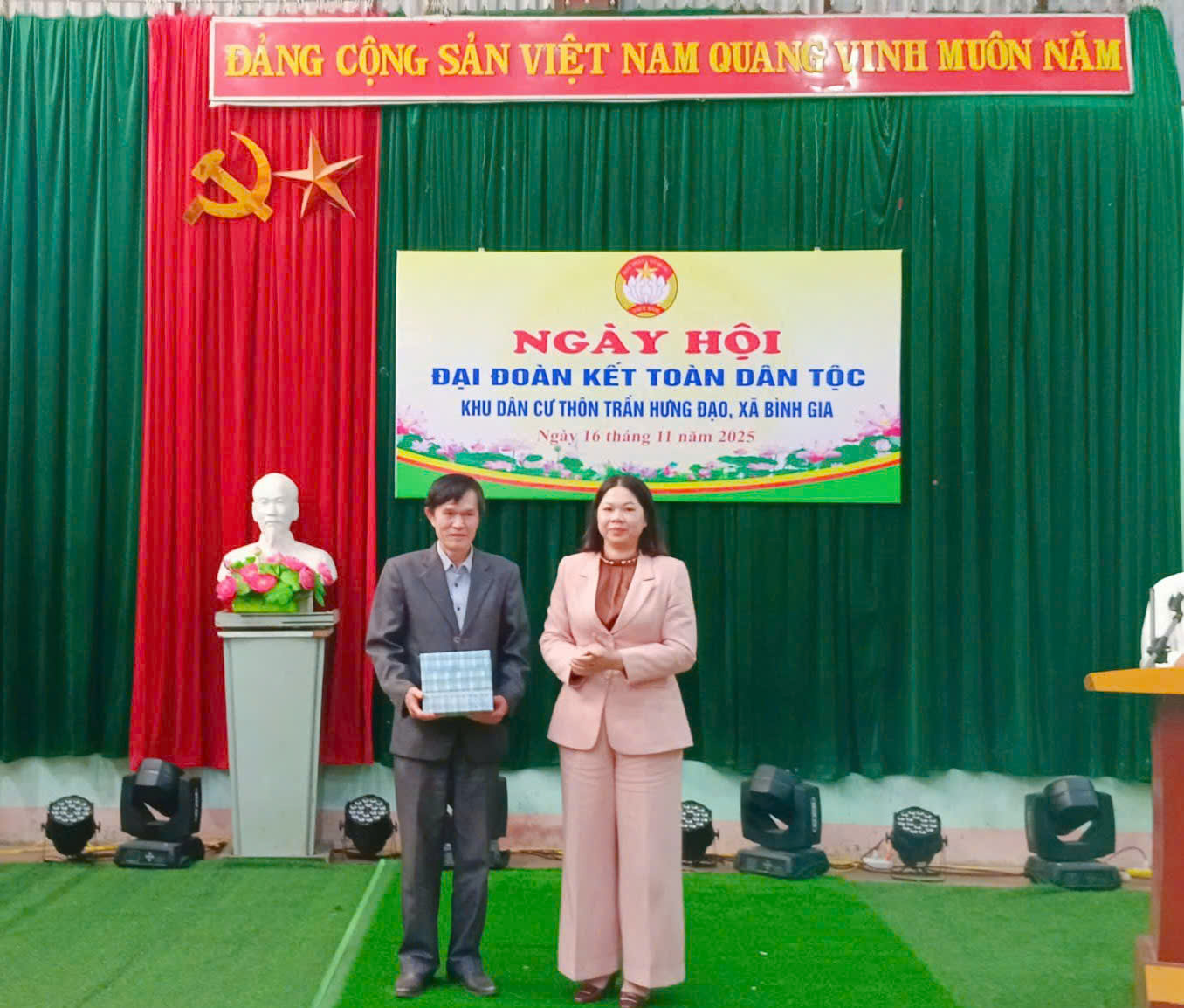 Nhân dịp này, đồng chí Đặng Thị Tới, Ủy viên BCH Đảng bộ, Phó Chủ tịch UBND xã trao tặng giấy khen của Chủ tịch UBND xã cho hộ gia đình đạt danh hiệu “ gia đình văn hóa” tiêu biểu, tặng quà cho người có uy tín tiêu biểu năm 2025