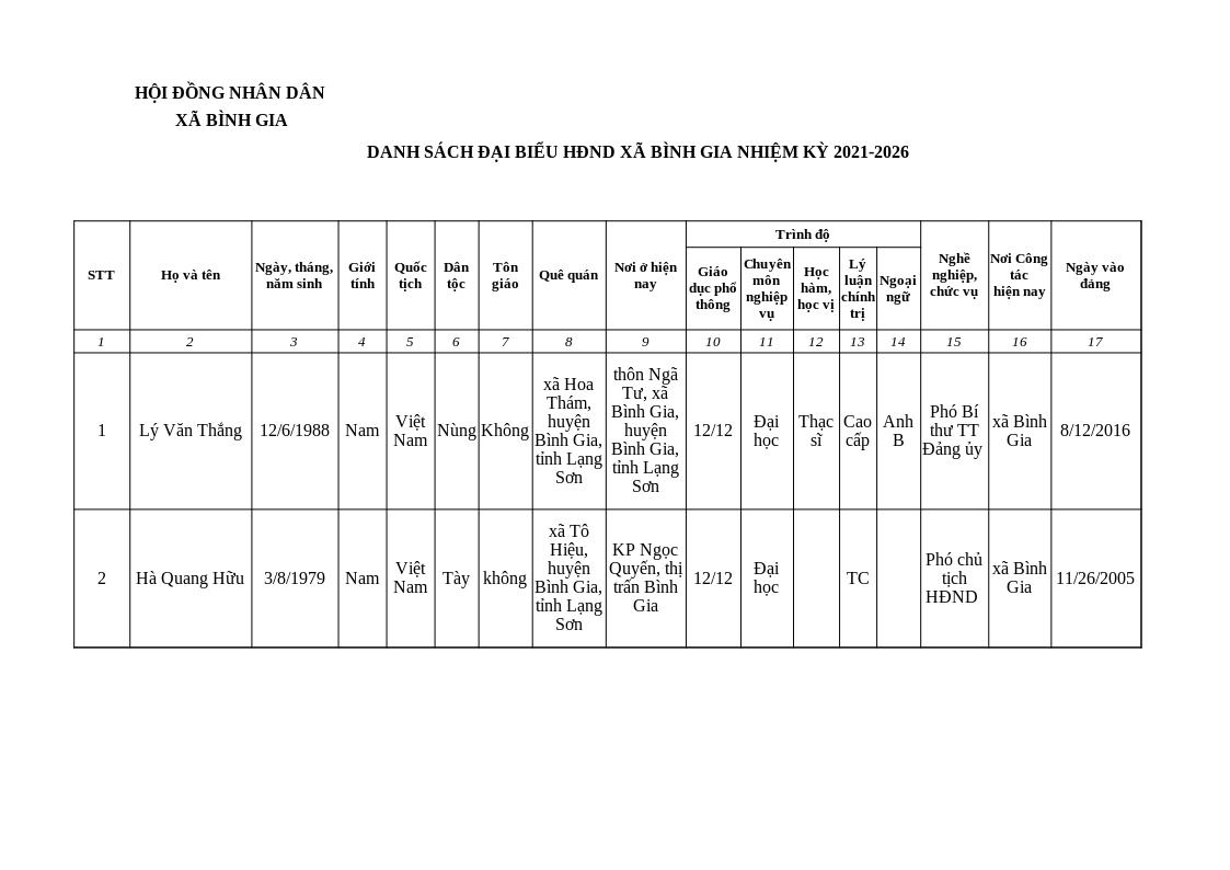 Tiêu đề văn bản | Danh sách đại biểu HĐND xã Bình Gia | ||
