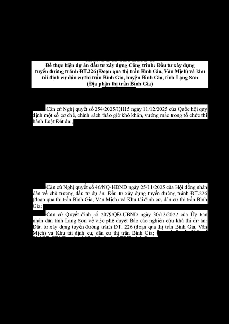 | Tiêu đề văn bản | THÔNG BÁO THU HỒI ĐẤT Để thực hiện dự án đầu tư xây dựng Công trình: Đầu tư xây dựng tuyến đường tránh ĐT.226 (Đoạn qua thị trấn Bình Gia, Văn Mịch) và khu tái định cư dân cư thị trấn Bình Gia, huyện Bình Gia, tỉnh Lạng Sơn (Địa phận thị trấn Bình Gia) | ||