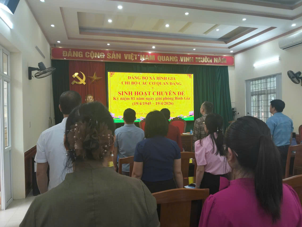 CHI BỘ CÁC CƠ QUAN ĐẢNG ỦY XÃ BÌNH GIA SINH HOẠT CHUYÊN ĐỀ KỶ NIỆM 81 NĂM NGÀY GIẢI PHÓNG BÌNH GIA (19/4/1945 - 19/4/2026)