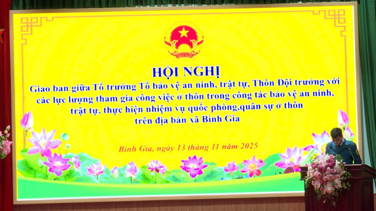 Ngày 13/11/2025, Ủy ban nhân dân xã Bình Gia tổ chức Hội nghị giao ban giữa Tổ trưởng tổ bảo vệ an ninh trật tự, Thôn đội trưởng với các lực lượng tham gia thực hiện nhiệm vụ ở thôn nhằm đánh giá tình hình và kết quả công tác bảo đảm an ninh trật tự, quốc phòng – quân sự trên địa bàn xã.